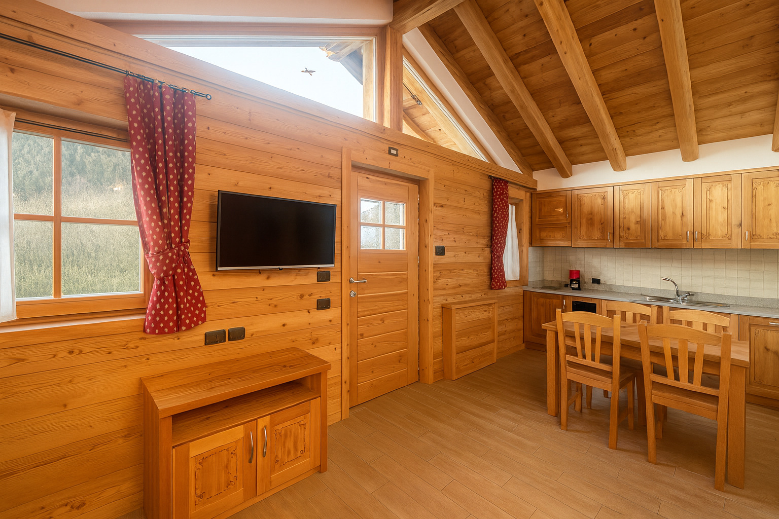 Fuori, la neve ovatta ogni rumore; dentro, il legno e il calore creano un’atmosfera raccolta e rilassante, ideale per rallentare e ritrovare il proprio ritmo.